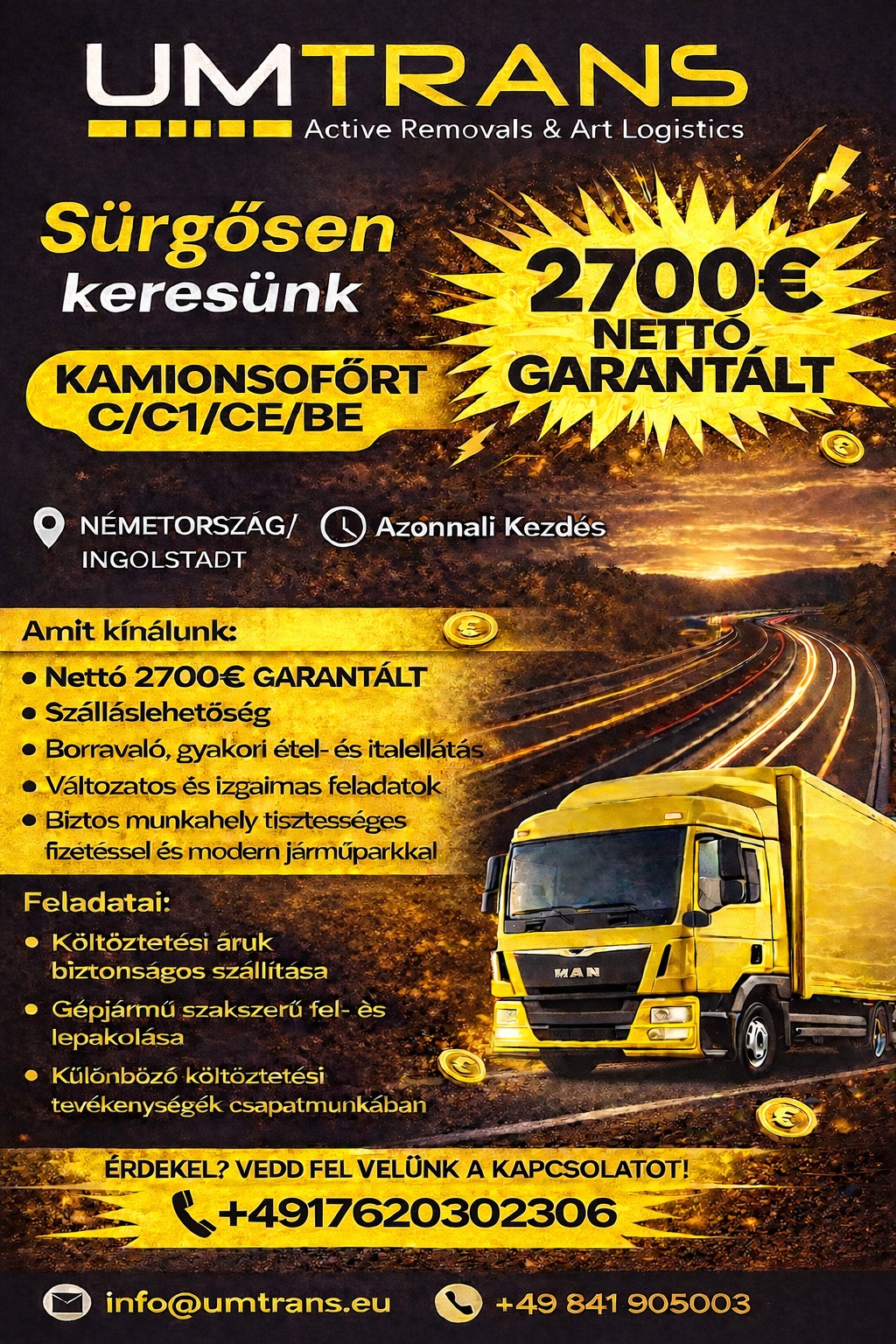 Sofőr állás a(z) Umtrans Active Removals and Art Logistics -nél